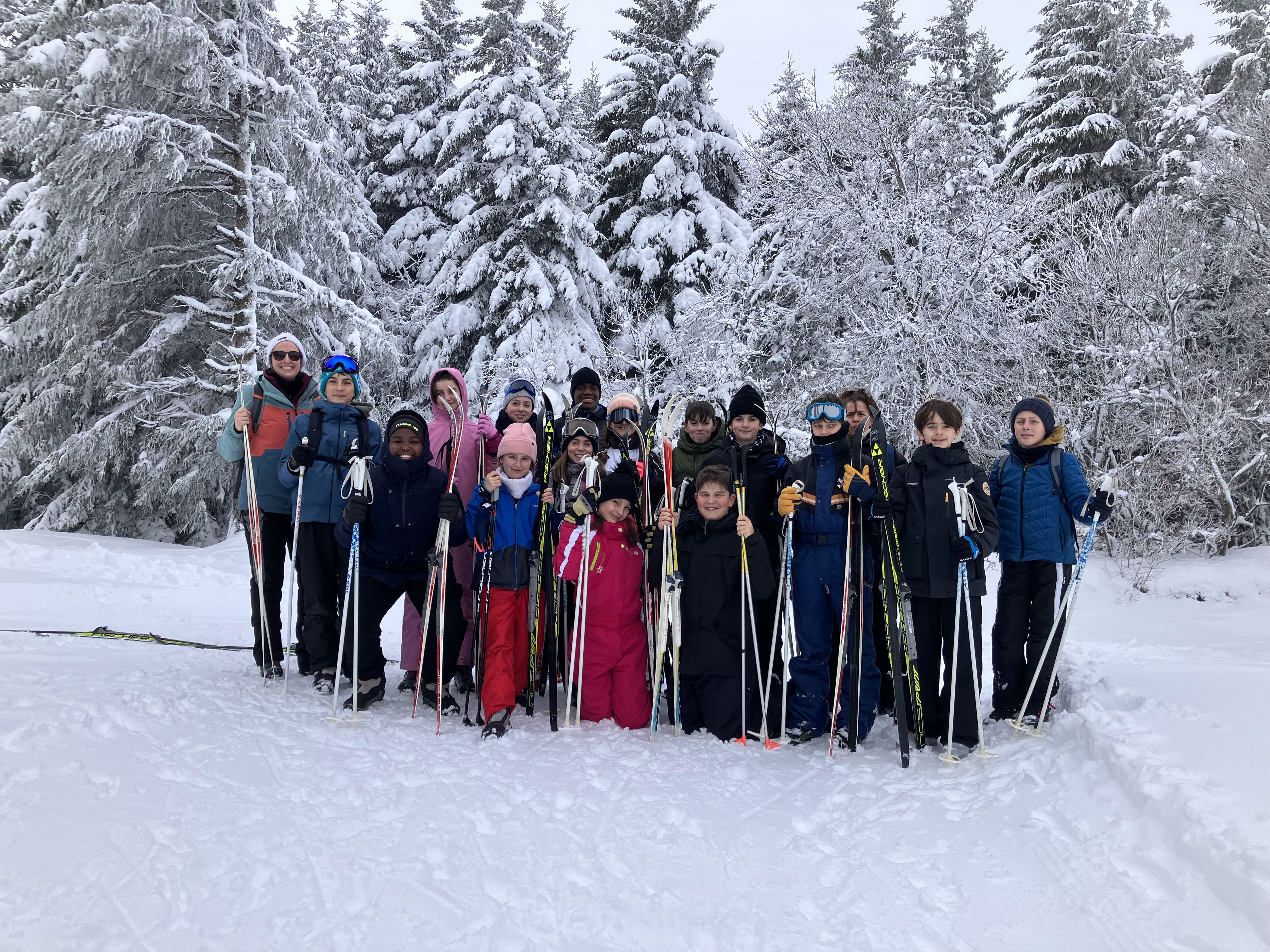 15 élèves de l'association sportive sont montés à la station de ski du Bleymard avec leurs enseignantes afin de profiter de la neige pour une après midi de ski de fond.